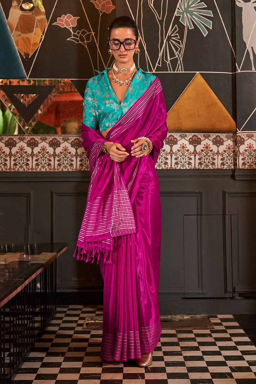 Ana Navy Blue Silk Blend Banarasi One Minute Saree
