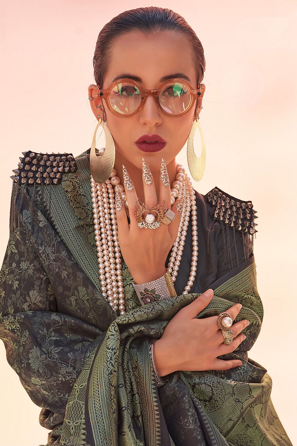 Zayna Black Kanjivaram Silk Woven Ready To Wear One Minute Saree