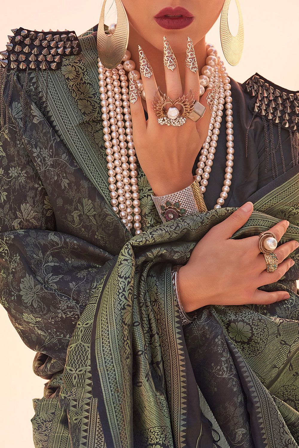 Elegant Black Kanjeevaram Silk Saree by One Minute Saree – Luxurious Fabric for Every Occasion