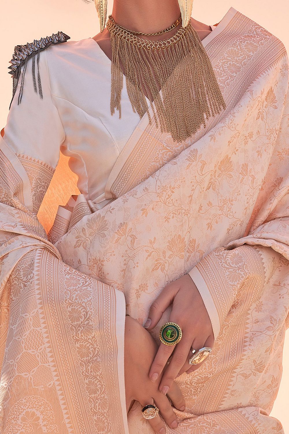 Zayna Cream Kanjivaram Silk Woven Ready To Wear One Minute Saree
