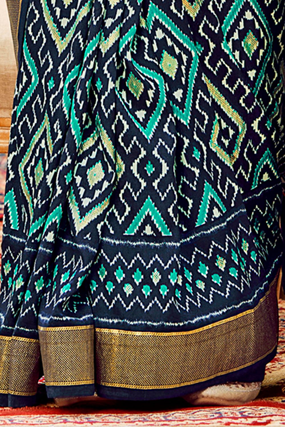 Sitara Navy Blue Tussar Silk Patola Print Ready To Wear One Minute Saree