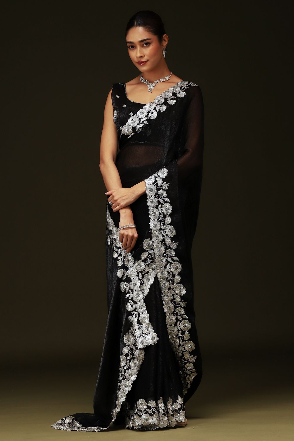 Piya Black Chiffon Saree with Embellished Border Ready To Wear One Minute Saree