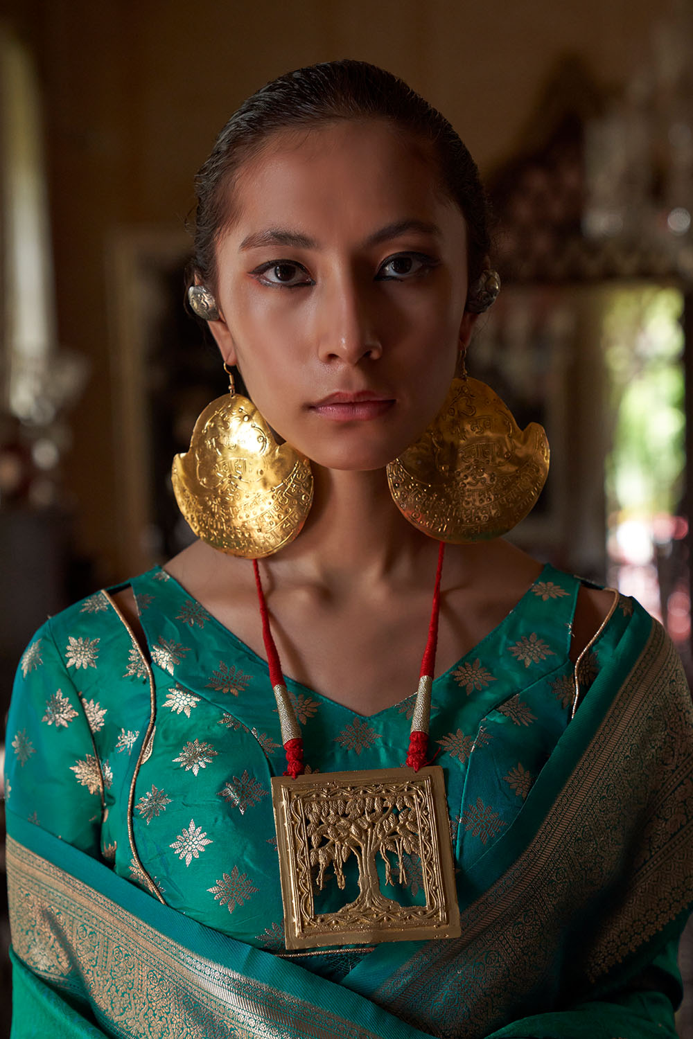Auri Gold Green Silk Woven Ready to Wear One Minute Saree