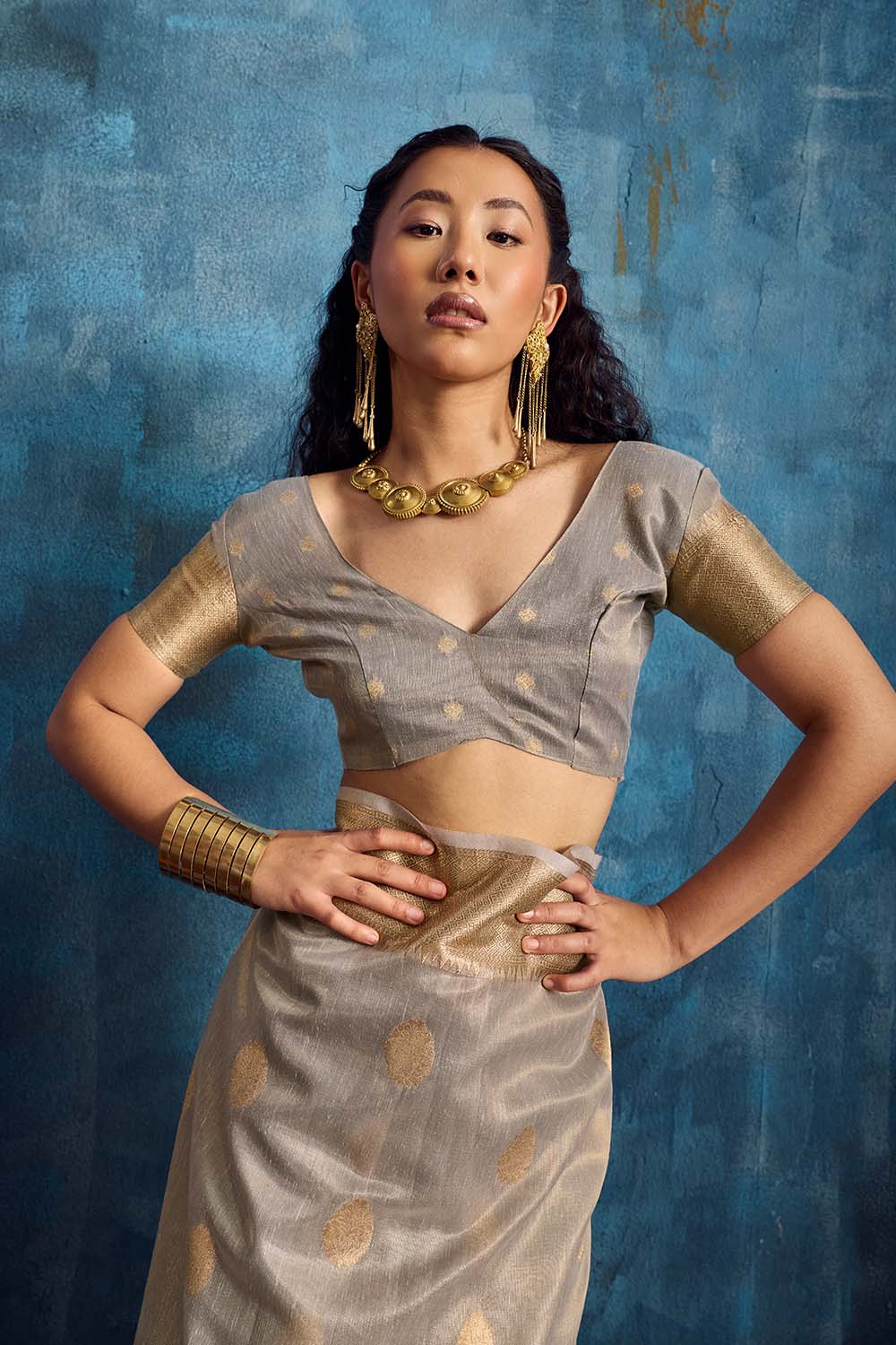 Cleo Grey Paithani Tissue Handloom Weaving Ready to Wear Saree