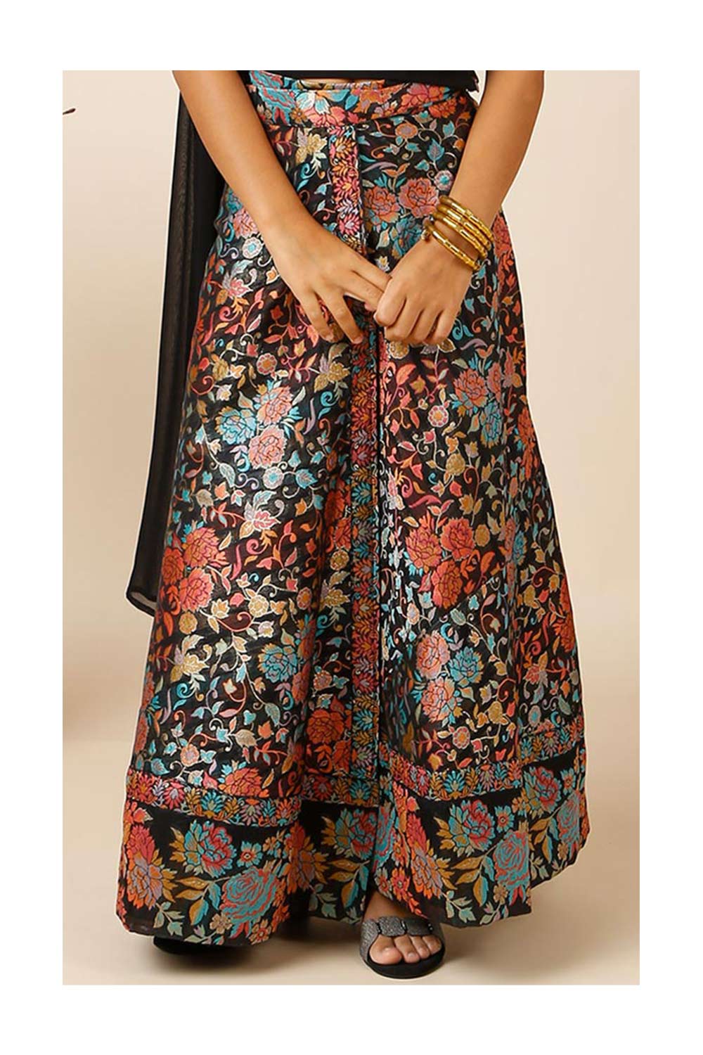 Therese Black Art Silk Floral Wrap Around Saree Skirt For Mom & Me