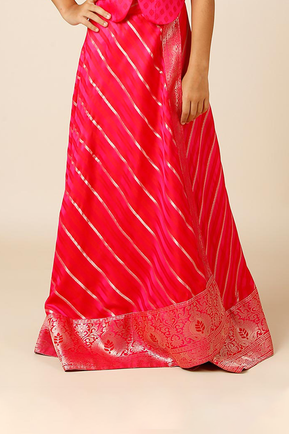 The Zaira Saree Skirt, is as Festive as it gets. In a beautiful traditional Leheriya pattern, this silk skirt is effortless ethnic. As a complete wrap around skirt, enjoy the adjustable waist sizing. Pair it with a tank, blouse or matching jacket as shown. The style is ankle length however you may choose the option to customize the length.