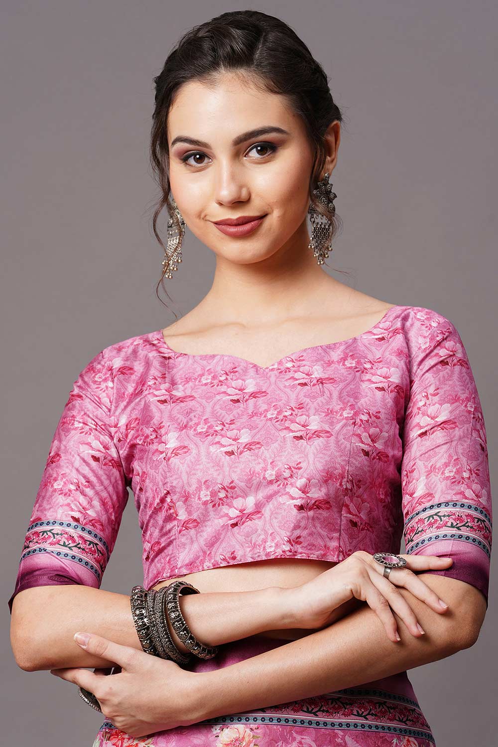 Buy Purple Floral Printed Dola Art Silk One Minute Saree Online - Zoom In