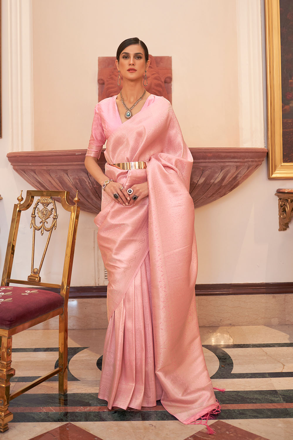 Abbey Light Pink Silk Handloom Weaving One Minute Saree