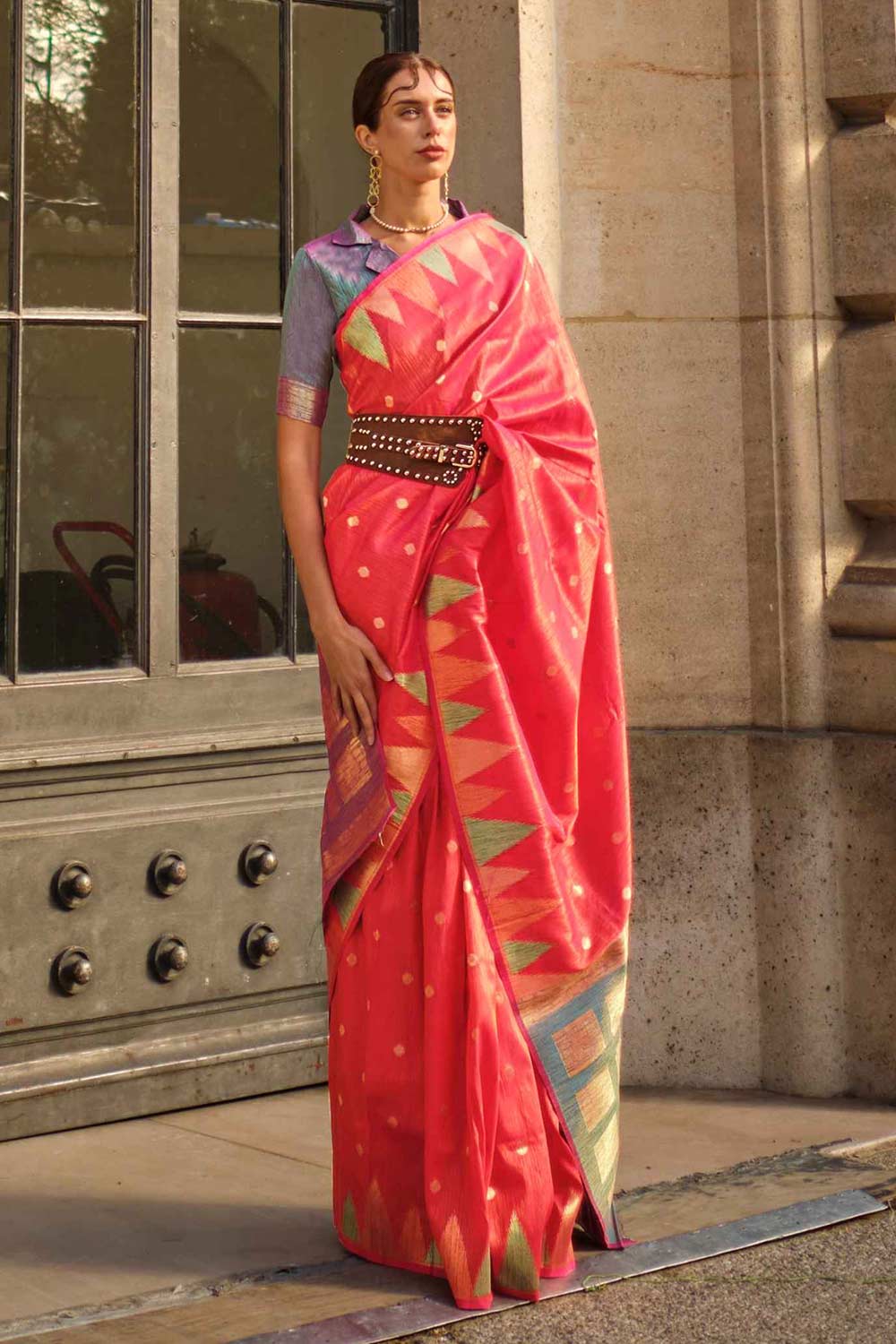 Jules Silk Pink Block Print One Minute Saree