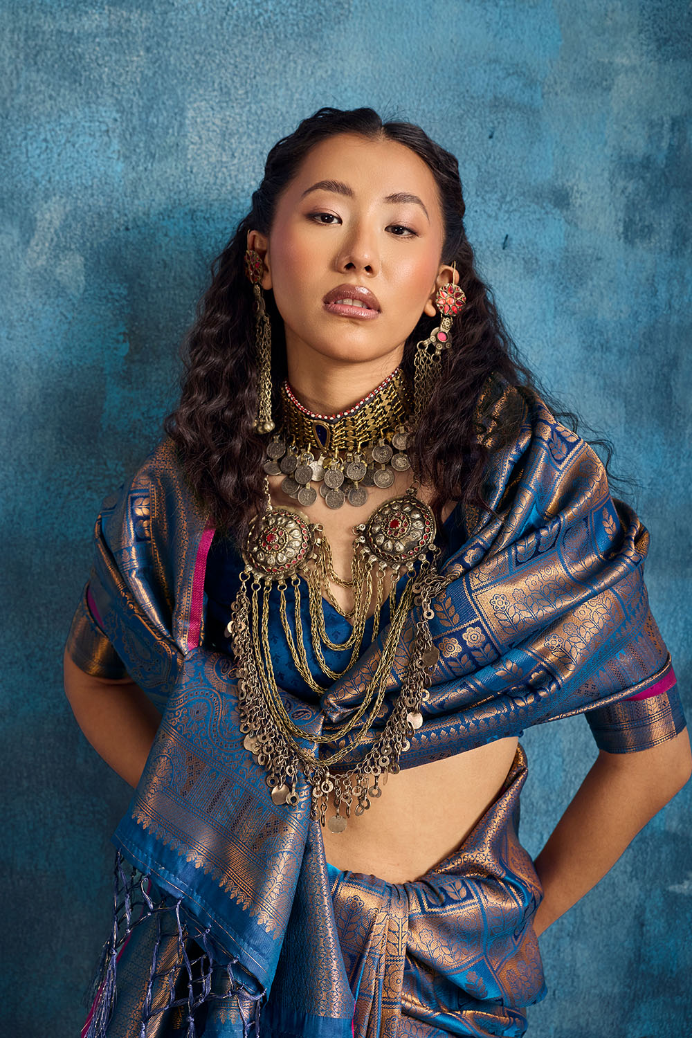 • Saree Color: Steel Blue