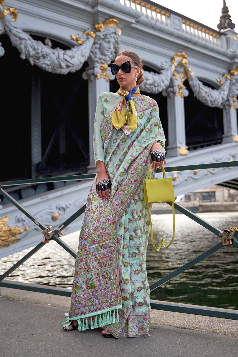 Crafted from premium-quality Tussar silk, this saree effortlessly adapts to make you look stunning every time. Note Tussar silk is a material that is light and has a stiffer quality giving the material a more raw appeal.