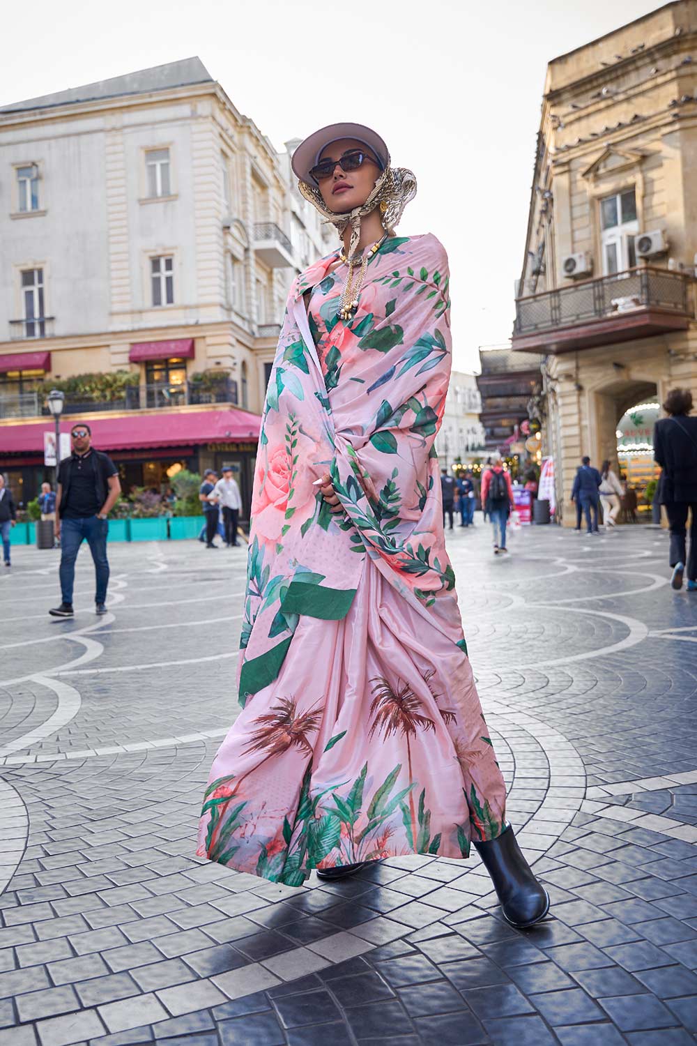 Hema Grey Satin Printed Ready to Wear One Minute Saree