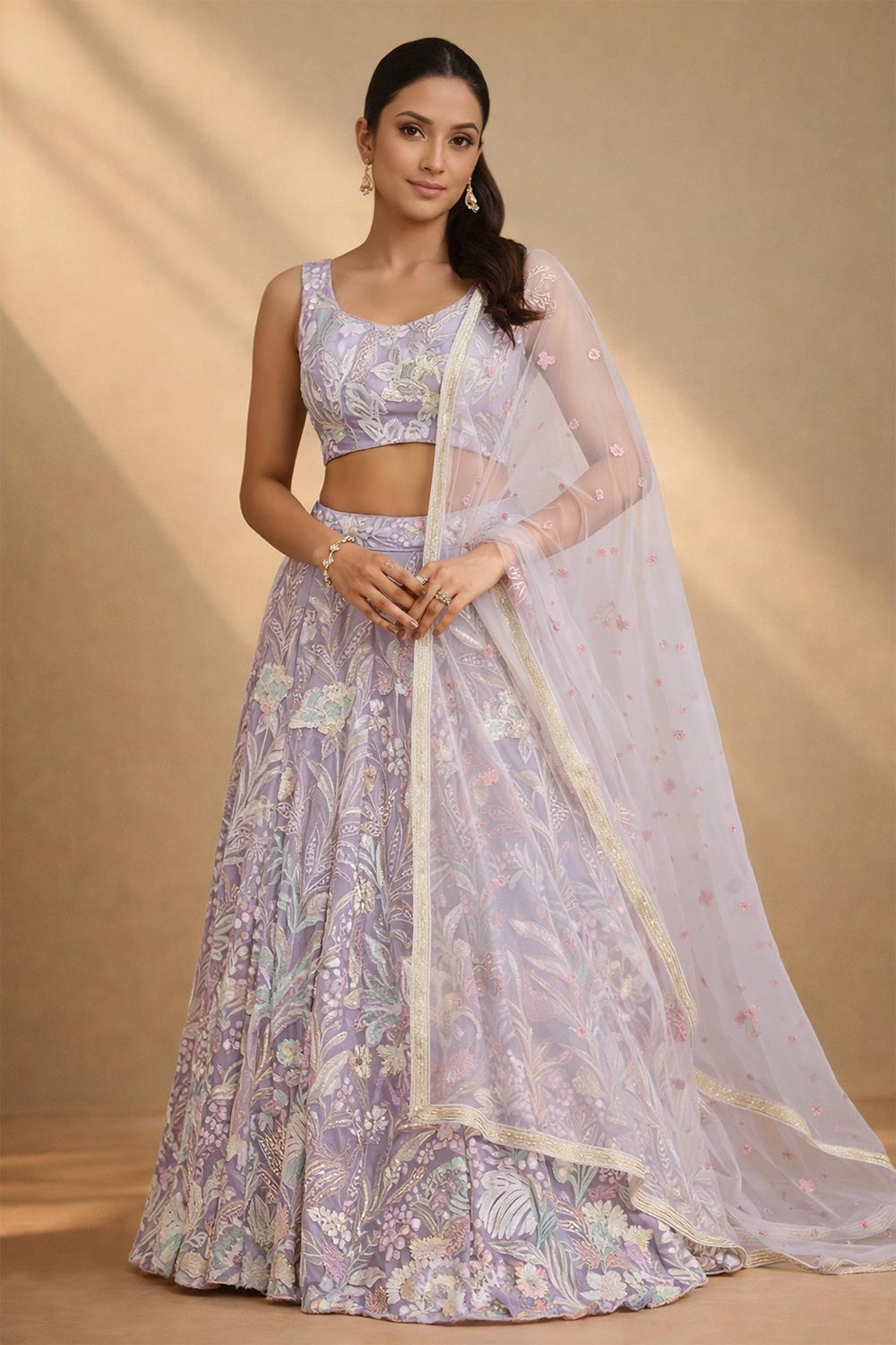 Lilly Lavender Sequin Embroidered Net Lehenga Saree