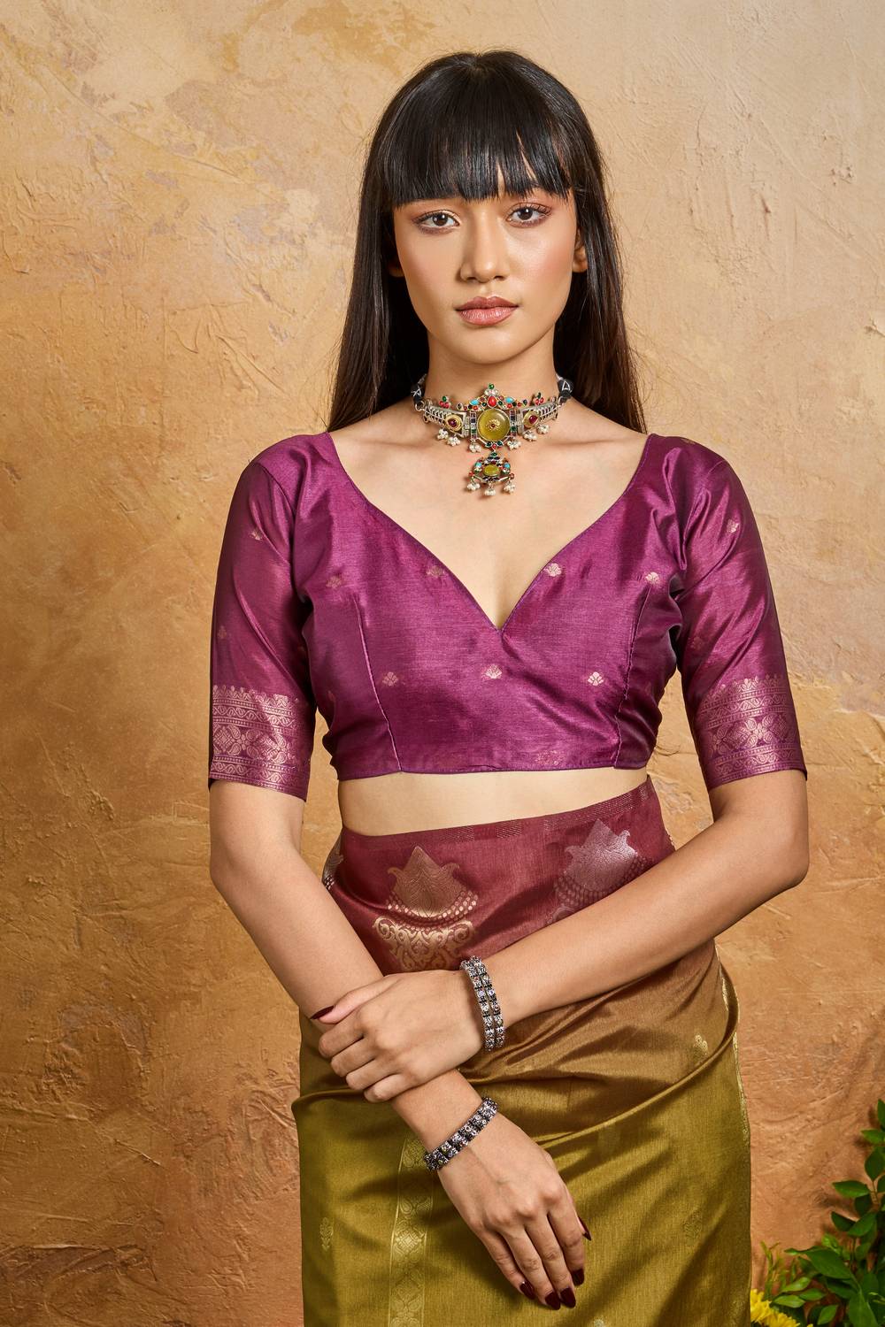 Elegant Green Handloom woven Paper Silk Saree by One Minute Saree – Luxurious Fabric for Every Occasion