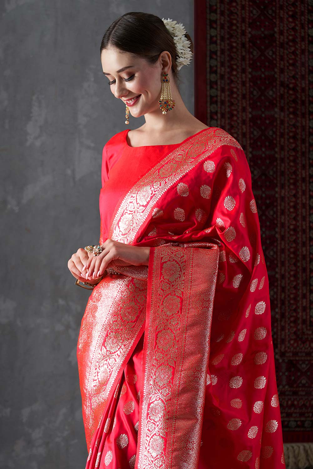 Amelia Luxe Red Tissue Silk With Stone Work One Minute Saree