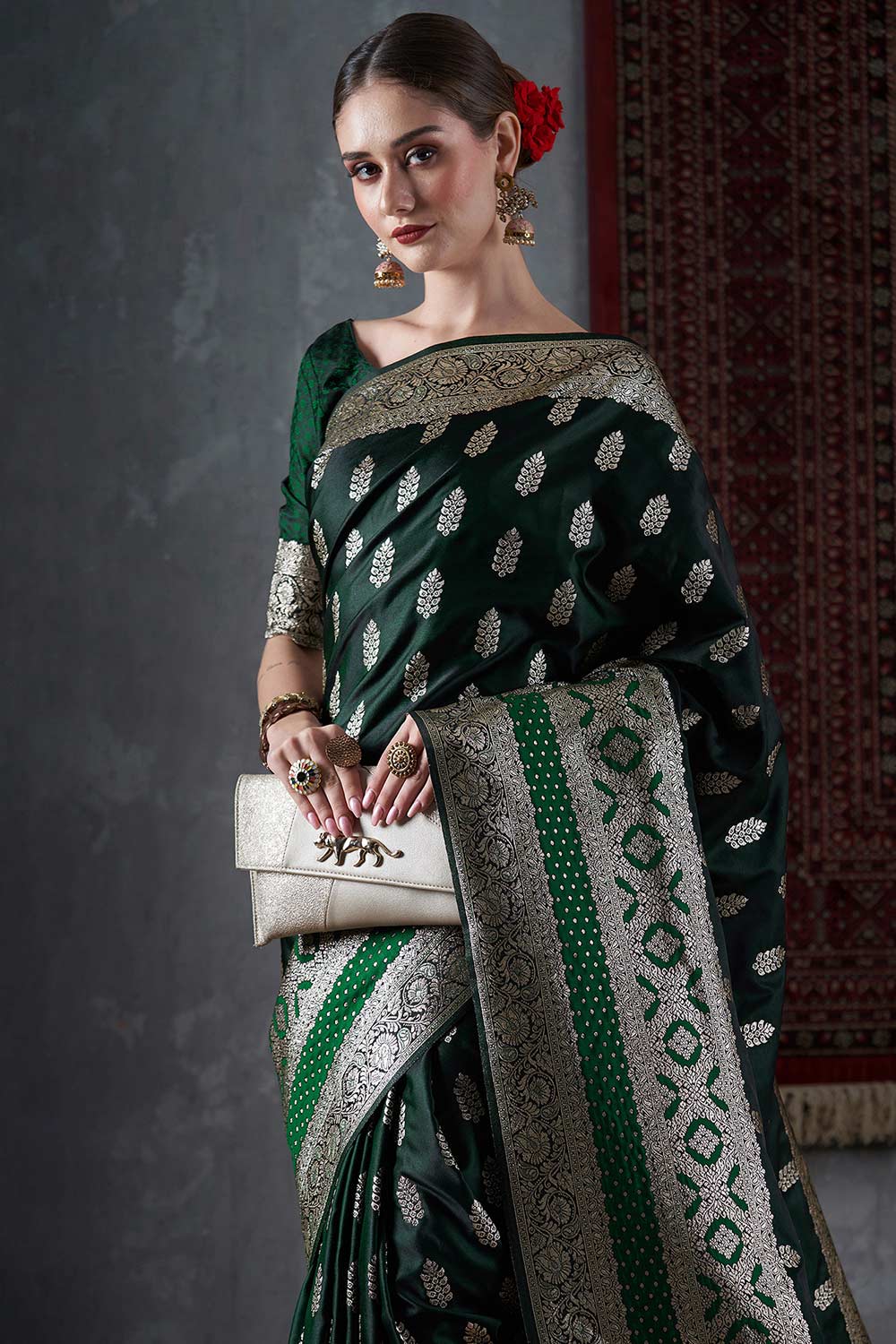 Sara Dark Green Silk Blend Banarasi Bagh One Minute Saree