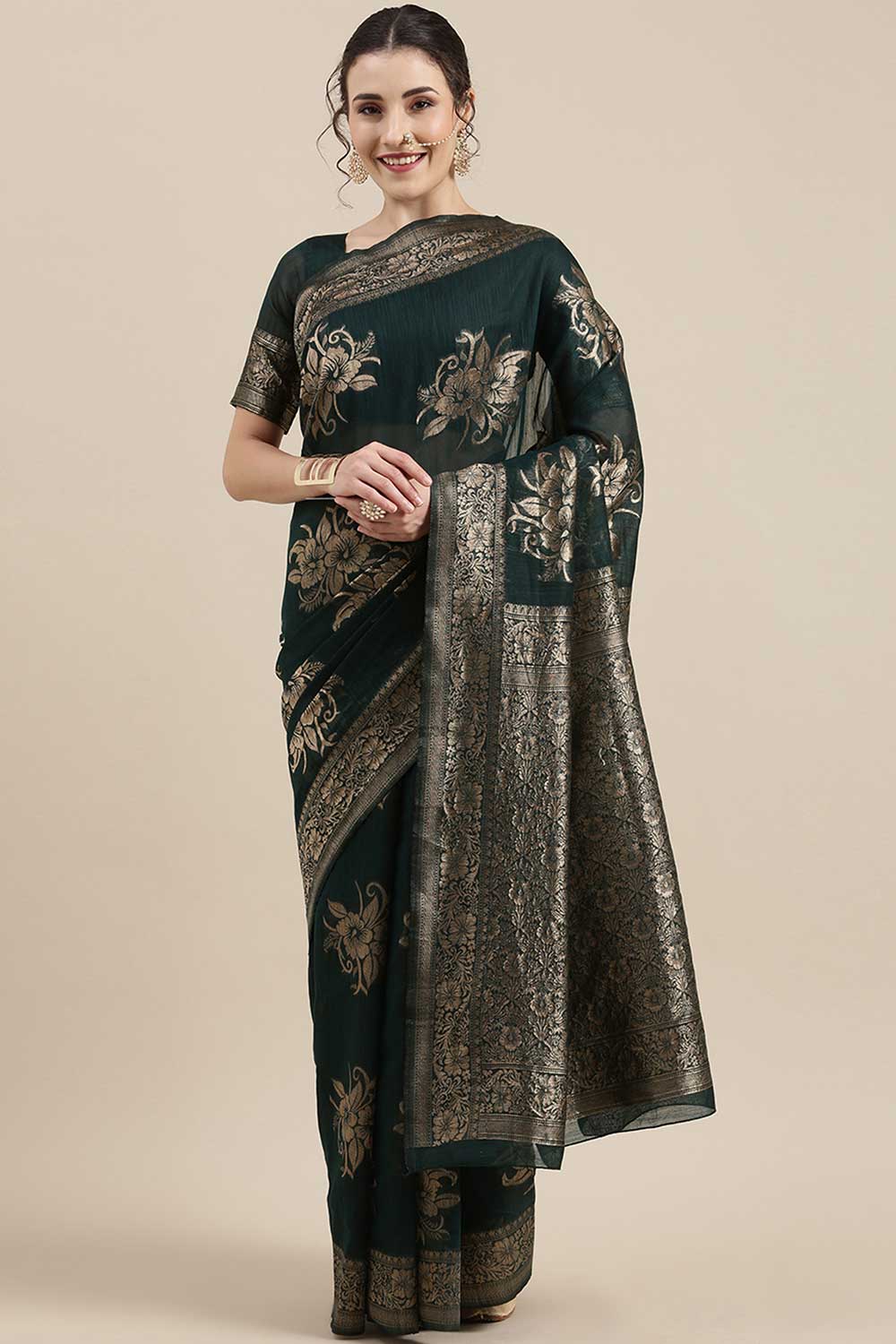 Rani Green Zari Woven Blended Silk One Minute Saree