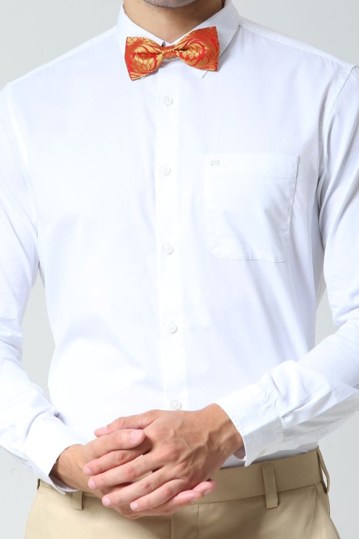 East meets West with the Pink Zari Woven Blended Silk Bow Tie made of genuine saree Zari material. No need for a full ethnic outfit when you have this bowtie as an accent!