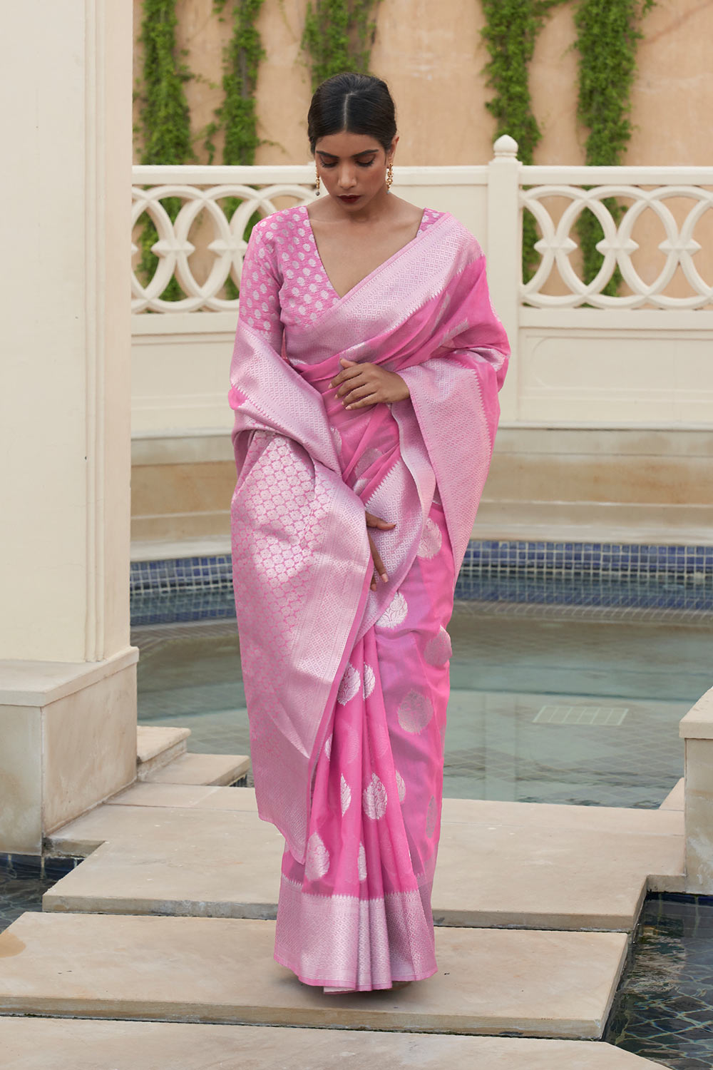 Aiya Pink Linen Handloom Weaving One Minute Saree