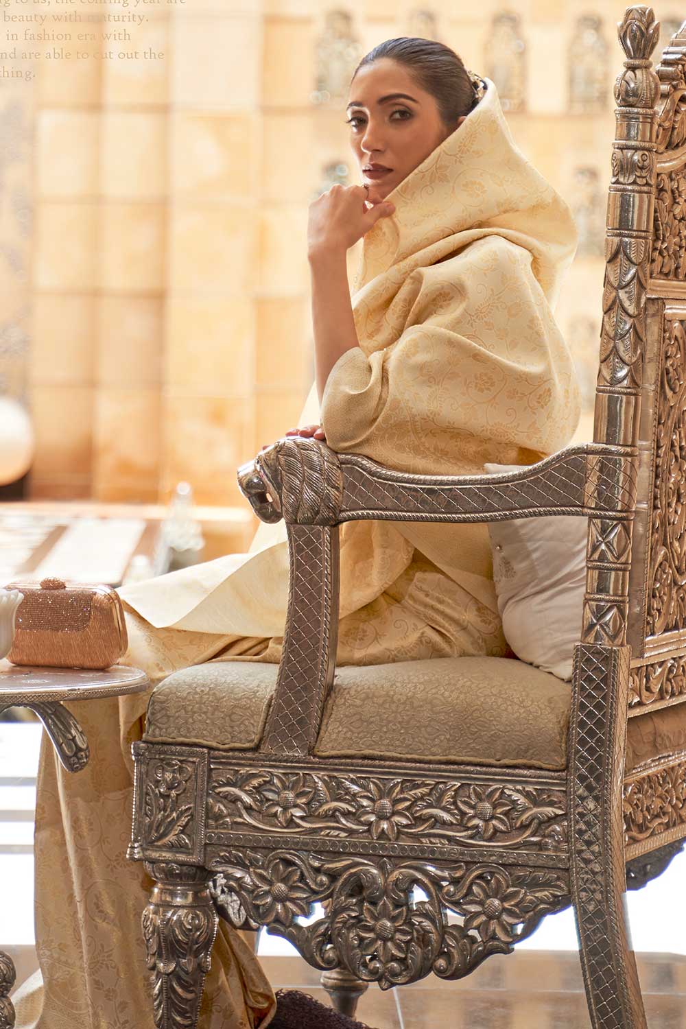 Ilona Beige Handloom Weaving Silk Saree One Minute Saree