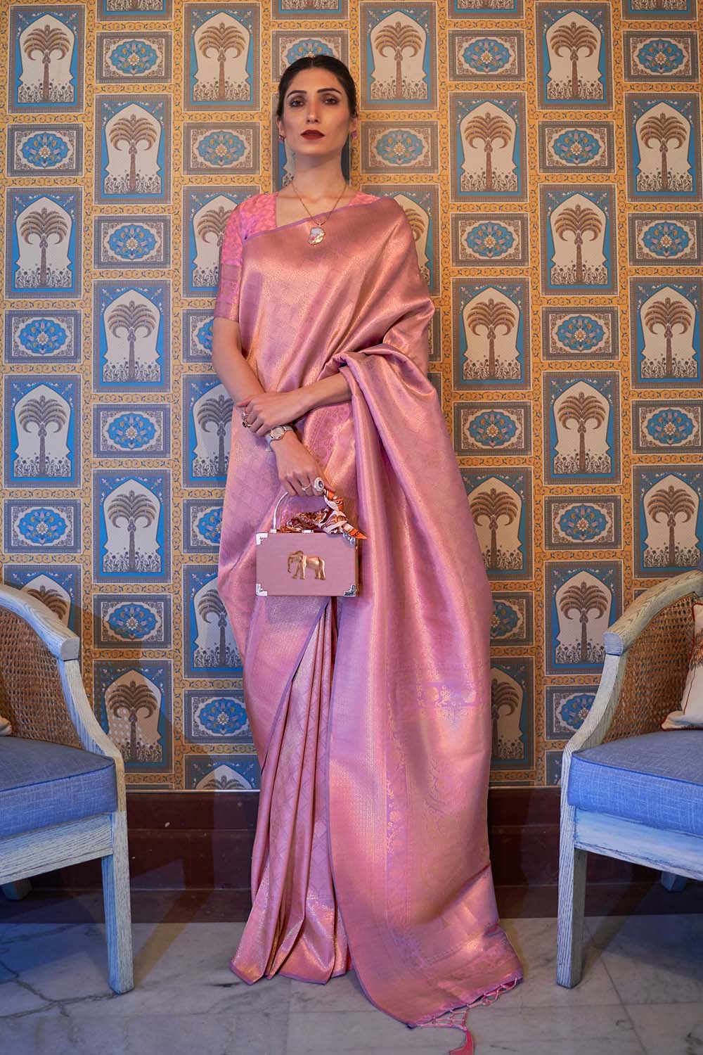 Alika Light Pink Modal Handloom Sequins Silk One Minute Saree