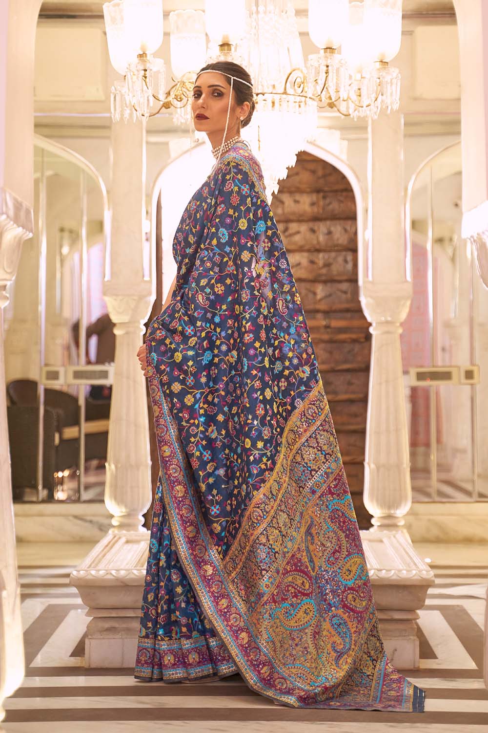 Viola Navy Blue Modal Handloom Silk One Minute Saree
