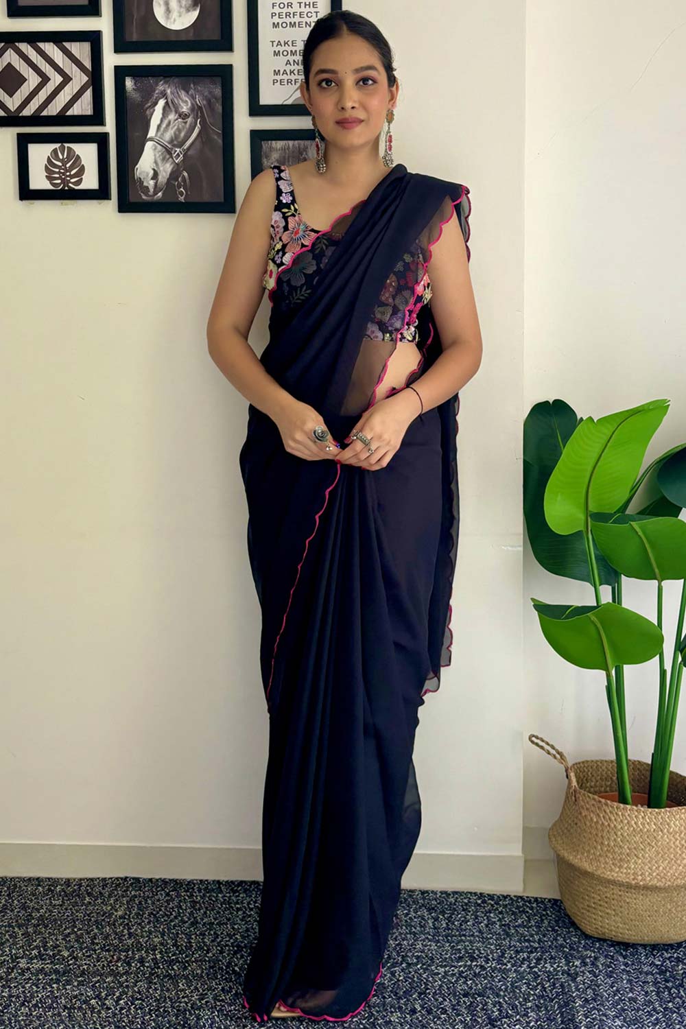 - Saree Color: Black and White