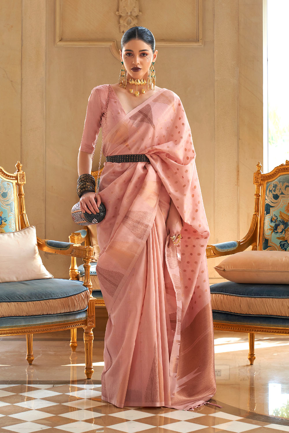 Kiyara Pink Tissue Woven Ready to Wear One Minute Saree