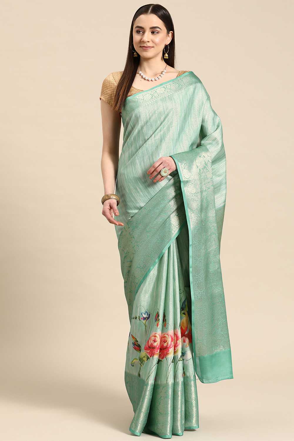 Lucia Green Soft Silk Floral Digital Printed Ready to Wear One Minute Saree