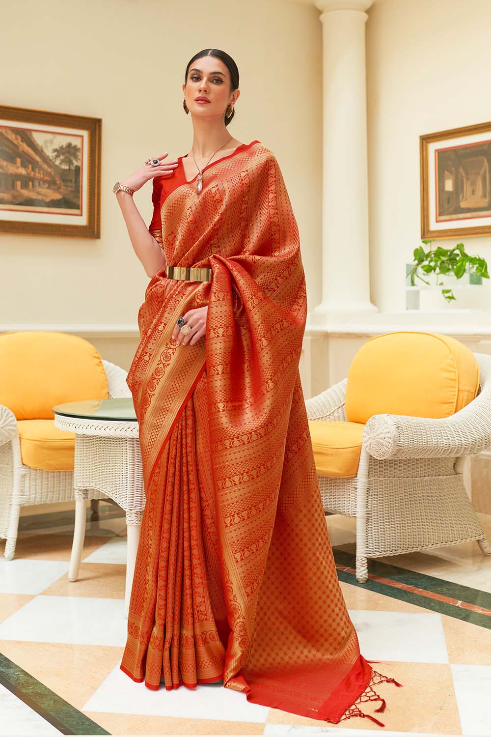 Fiora Red Zari Handloom Weaving Silk One Minute Saree