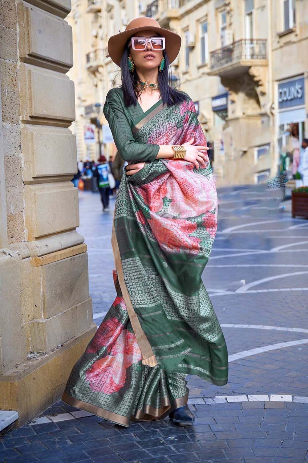 Leana Light Grey Print Viscose Crepe One Minute Saree