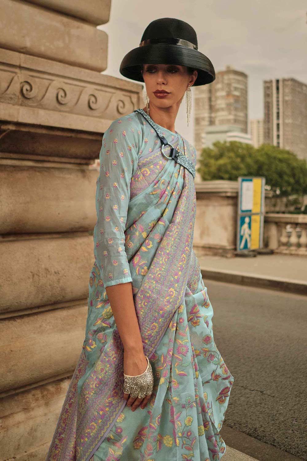 Aaliyah Sky Blue Woven Art Silk One Minute Saree