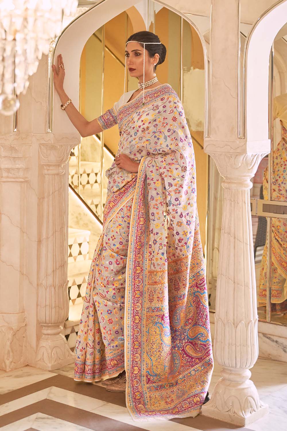 • Petticoat: Saree comes with an in-built butter crepe petticoat, no additional petticoat is required to wear with the saree.