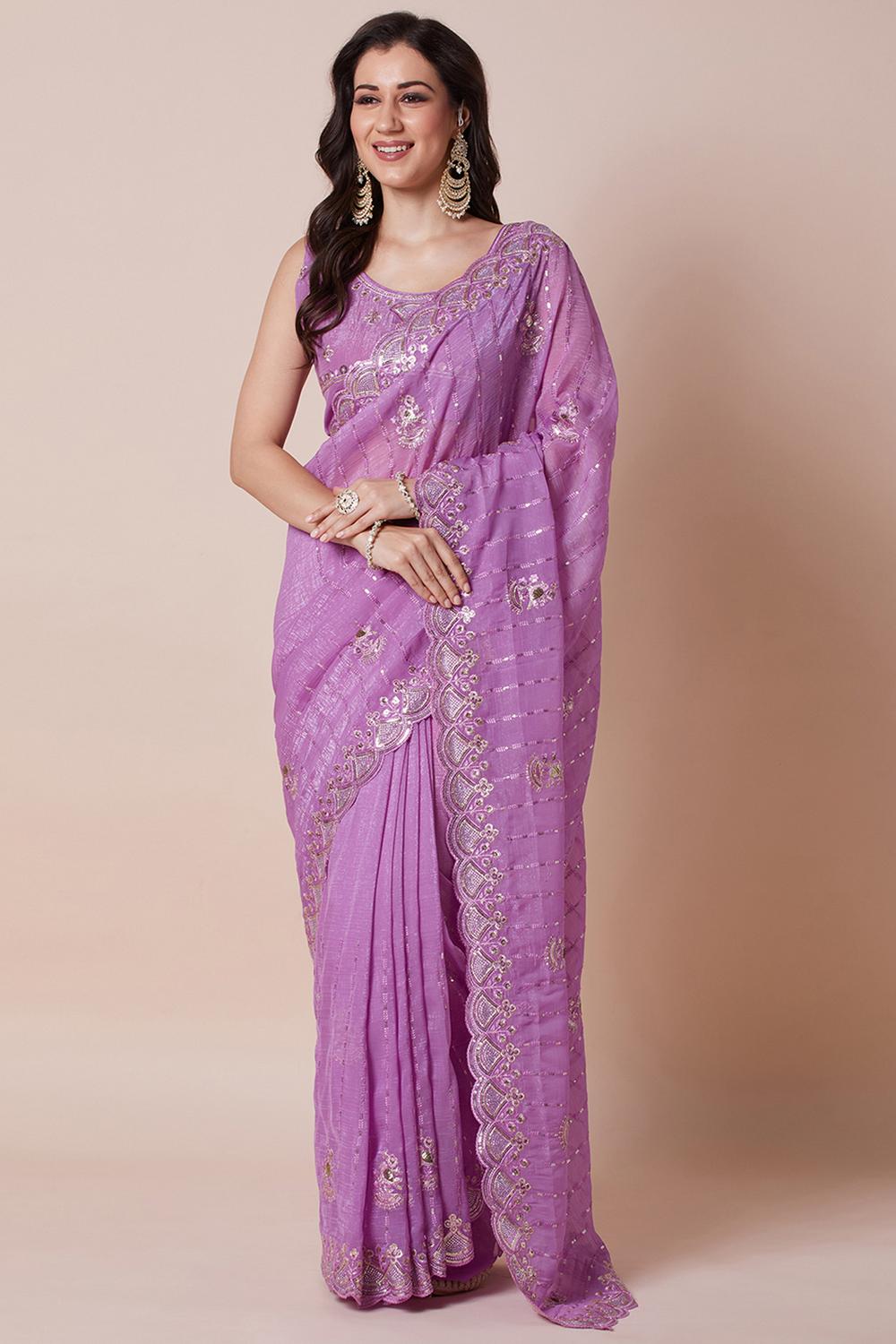 Jhumpa Purple Chiffon Embroidered Zari Border Ready to Wear Saree