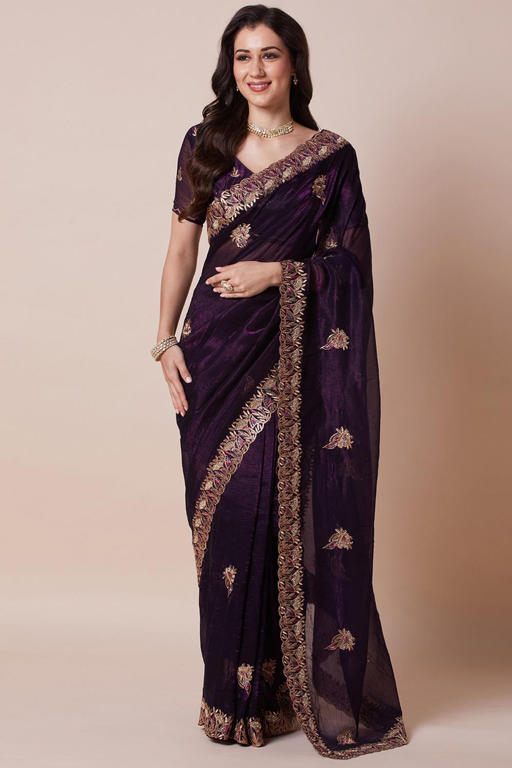 Anisa Purple Satin Zari Silk Embellished Ready to Wear Saree