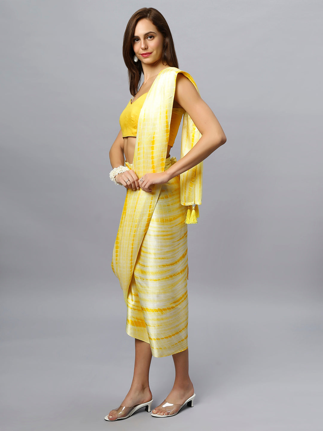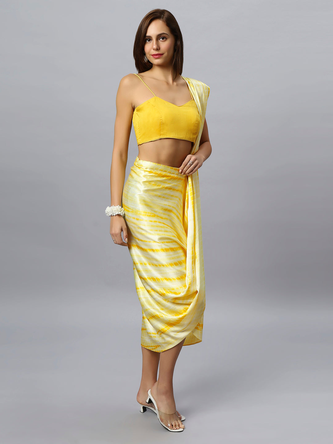 AVRIL YELLOW MODAL SATIN TIE DYE SARONG SAREE (SKU OMS-SS-003-YELLOW)