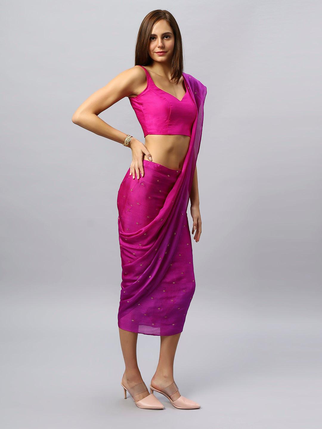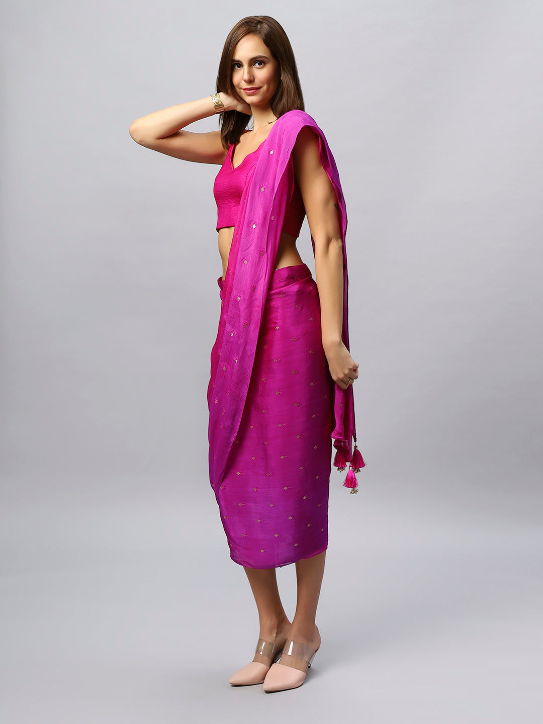 Jolie Magenta Chinon Silk Sarong Saree with Gold Sequin (SKU OMS-SS-003-MAGENTA)