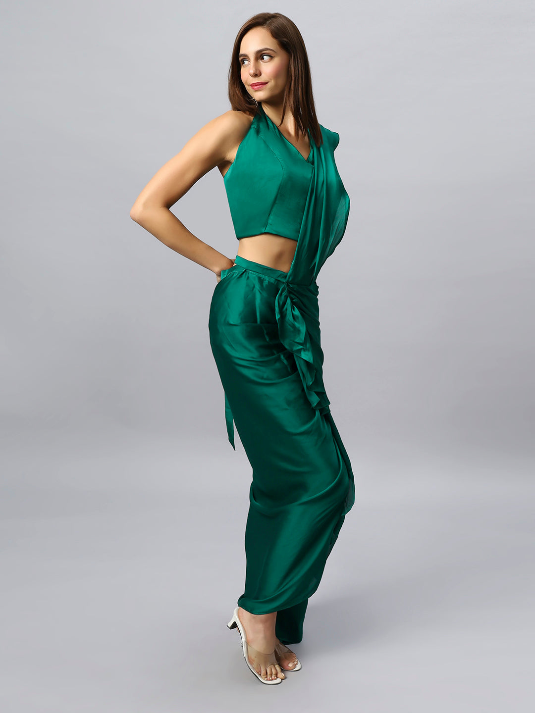 Lillia Emerald Green Satin Silk Sarong Saree (SKU OMS-SS-005-EGREEN)