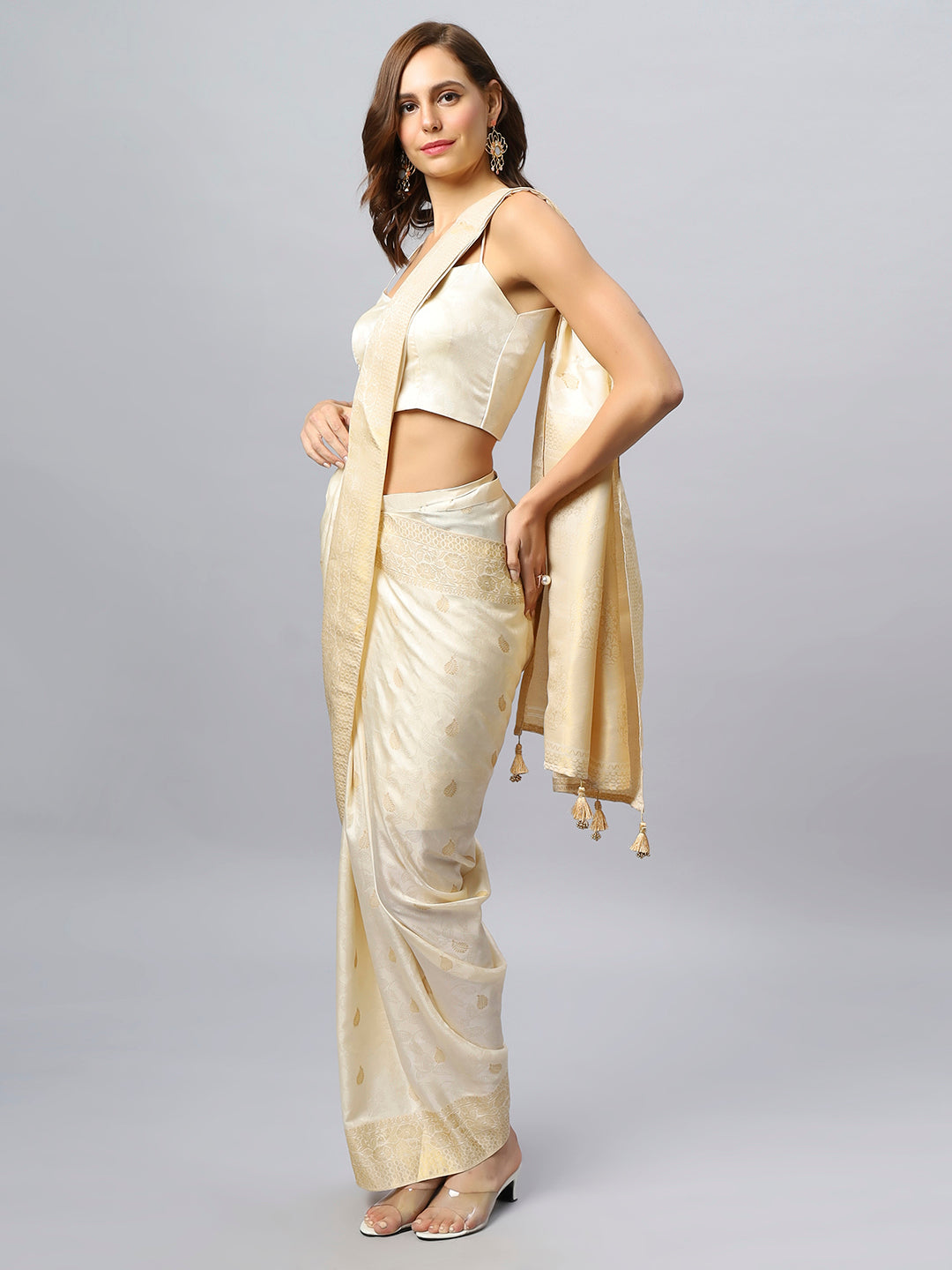 Nuri Cream Banarasi Sarong Saree With Blouse (SKU OMS-SS-001-CREAM)