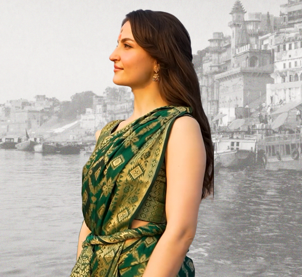 Elli Avram wore our One Minute Saree during her India tour with Curly Tales, and it was nothing short of magical! She showcased the elegance of our sarees against the stunning backdrop of Banaras Ghats, blending tradition with effortless style in one of India’s most iconic locations.