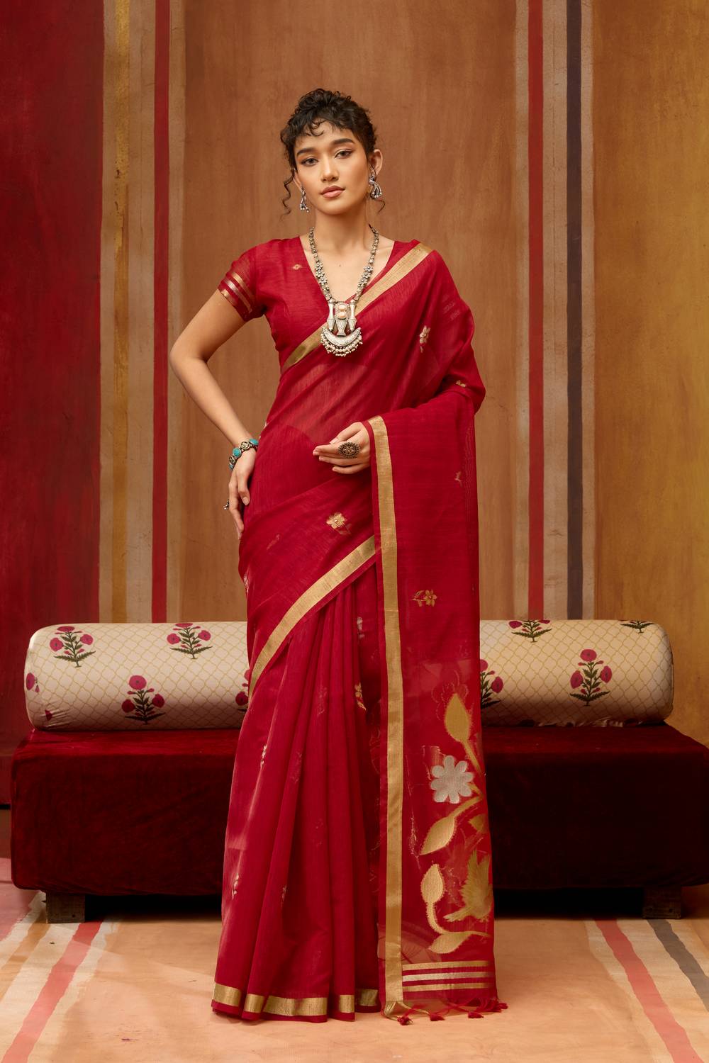 - Saree Color: Scarlet Red